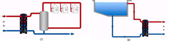 ??⑤地源、水源熱泵: 換熱器作為熱泵主機和開放式冷熱源的分離裝置,克服水質對主機等敏感設備的腐蝕。(圖5