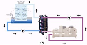 ??換熱器的使用將開式冷卻循環系統和機組的閉式循環系統分隔開,有效的保護了機組閉式循環系統的潔凈,延長了機組的使用壽命。(圖7